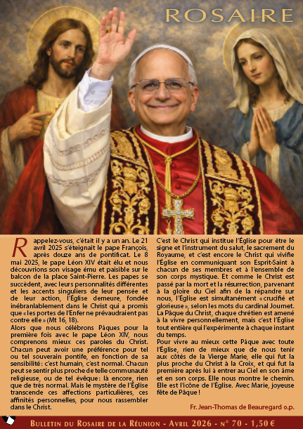 Rappelez-vous, c’était il y a un an. Le 21 avril 2025 s’éteignait le pape François, après douze ans de pontificat. Le 8 mai 2025, le pape Léon XIV était élu et nous découvrions son visage ému et paisible sur le balcon de la place Saint-Pierre. Les papes se succèdent, avec leurs personnalités différentes et les accents singuliers de leur pensée et de leur action, l’Église demeure, fondée inébranlablement dans le Christ qui a promis que « les portes de l’Enfer ne prévaudraient pas contre elle » (Mt 16, 18).