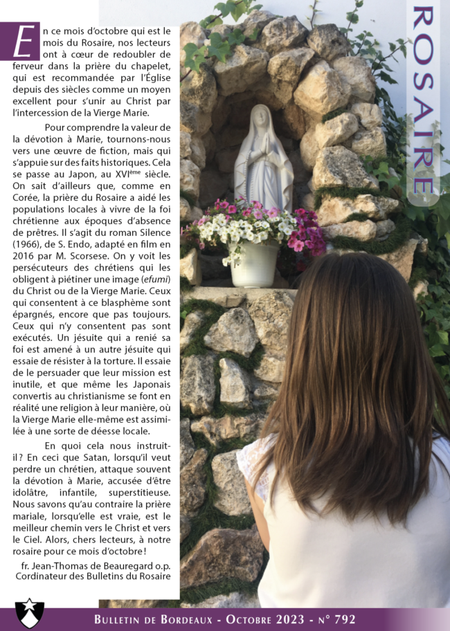 AU SOMMAIRE CE MOIS-CI Éditorial L’euthanasie, la souffrance et les chrétiens Qu’est-ce qu’une authentique vie spirituelle ? Tous coupable ? Informations régionales Méditations du Rosaire Pour lire l’ensemble du Bulletin mensuel de…